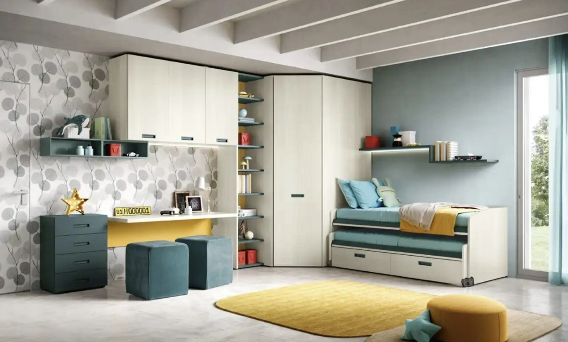 Arreda stanzette moderne con le Camerette con letti scorrevoli Moretti Compact Camerette! Il modello K105 in melaminico è per bambini.