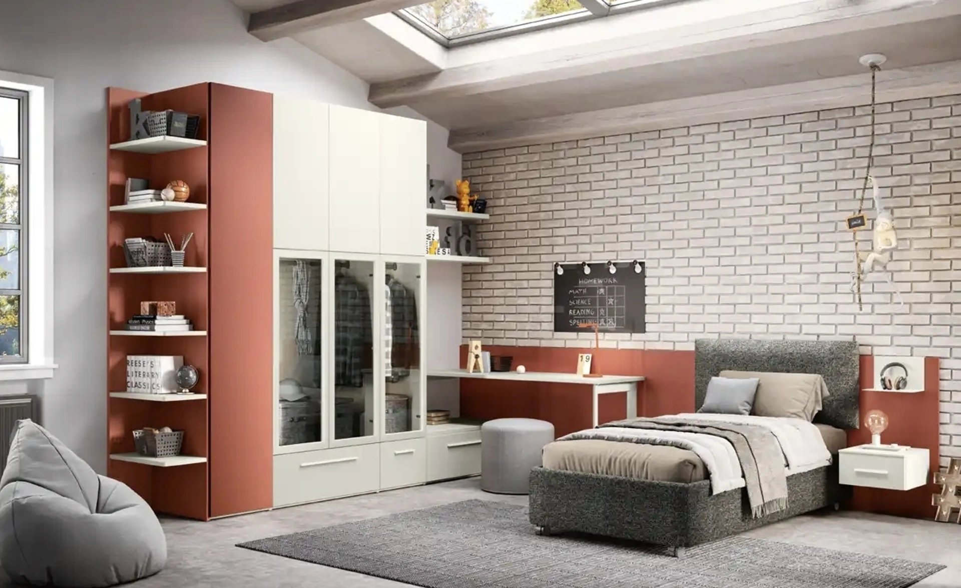 Proponiamo nel nostro showroom diverse Camerette su misura moderne per ragazzi del brand, ideali per accompagnarli durante il loro sviluppo. Con la Cameretta K108 di Moretti Compact Camerette in laccato opaco ti assicurerai un perfetto mix di ergonomia e sicurezza, ideale per la stanza dei tuoi figli. Le Camerette dei nostri figli sono il luogo dove diventeranno grandi giocando e sognando, quindi è essenziale che lo spazio sia agevole. Nel nostro punto vendita ti seguiamo dalla scelta dei mobili per la camera alla progettazione del luogo nel quale i tuoi bimbi cresceranno, giocando e sognando.