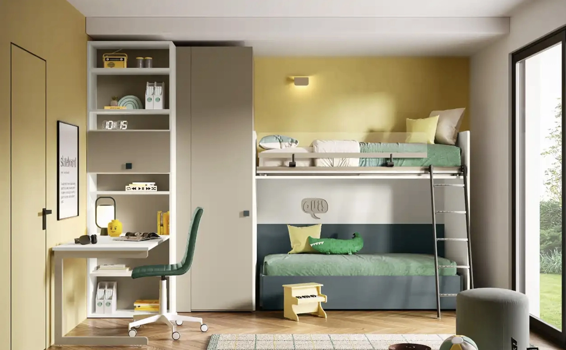 Tonalità di tendenza e soluzioni progettuali d'eccellenza contraddistinguono le più belle composizioni del rinomato marchio che presentiamo nel nostro showroom. Vieni nel nostro showroom e potrai vedere dal vivo tutte le più belle composizioni d'arredo con letti a castello moderne di Moretti Compact Camerette per i più giovani. La Cameretta K114 di Moretti Compact Camerette in melaminico è un mondo complesso da arredare con attenzione, unendo vari elementi accessori su misura. Con una composizione arredativa Moretti Compact Camerette, potrai ultimare con funzionalità e design lo spazio in cui i tuoi figli trascorrono gli anni fondamentali della vita.