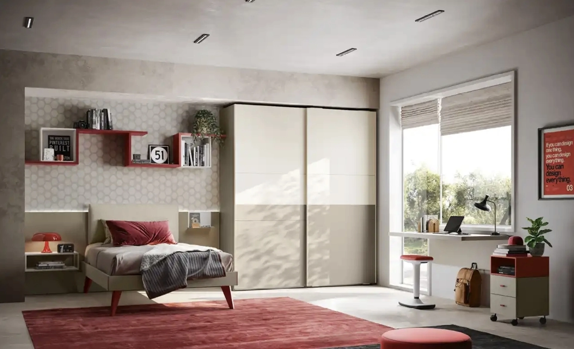 Con questa cameretta Y107 Moretti Compact Camerette, tra le soluzioni componibili, potrai allestire stanze moderne per ragazzi.