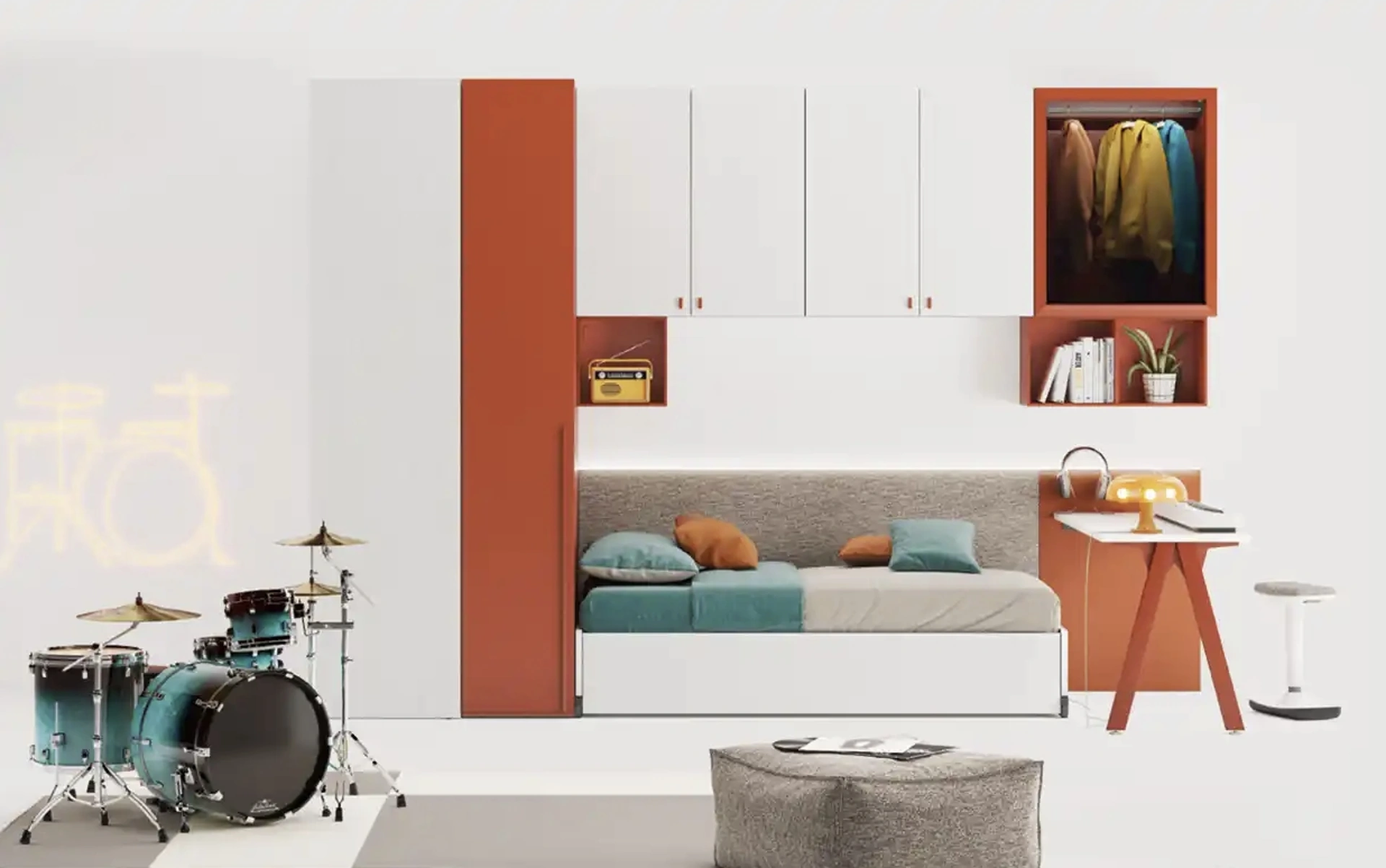 Con questa cameretta YGAB Moretti Compact Camerette, tra le soluzioni a ponte, potrai arredare stanze moderne per ragazzi.
