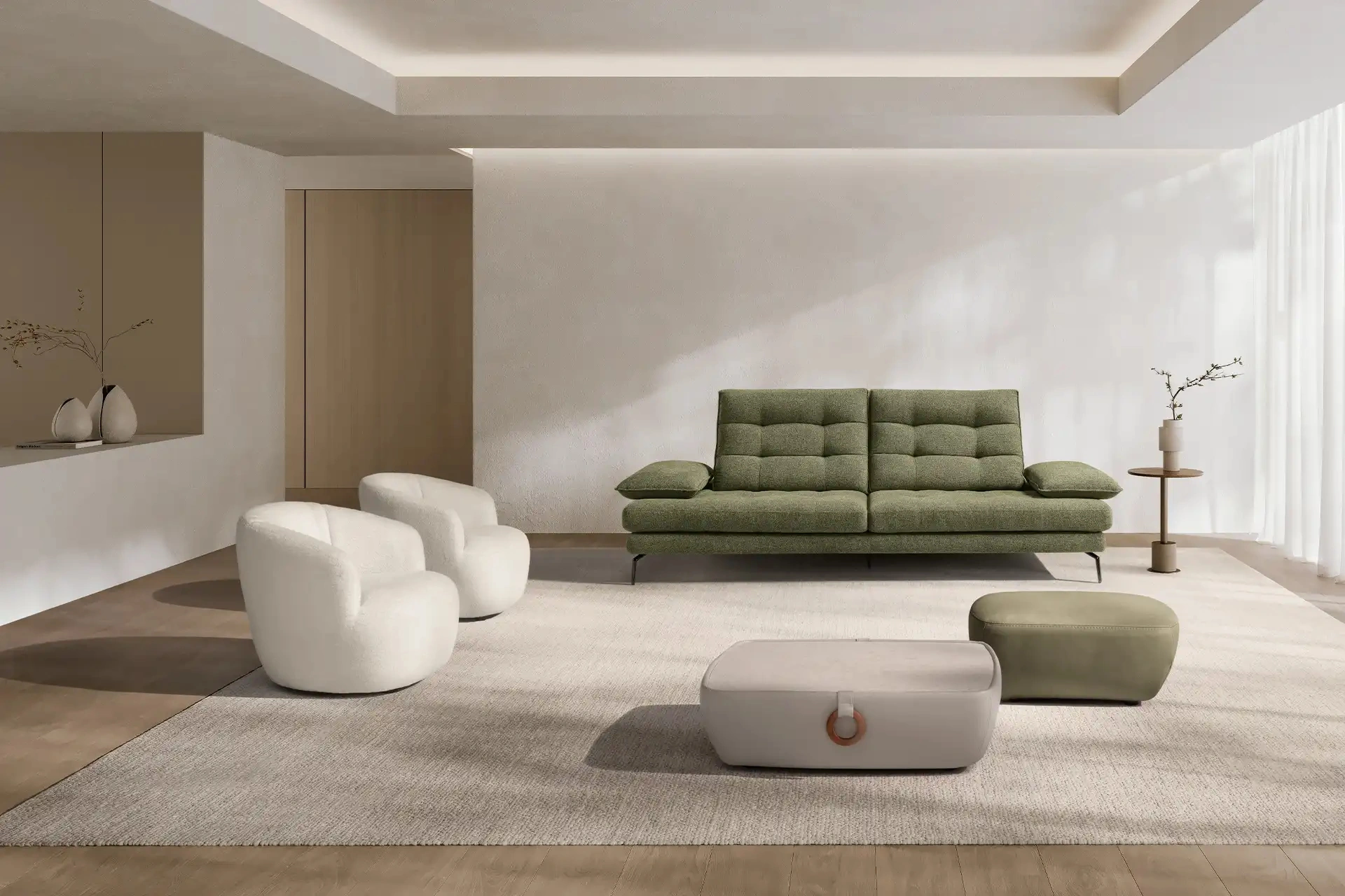 Max Divani, leader nella produzione di divani, ha creato per il modello nella fotografia un elegante e sofisticato rivestimento in tessuto. Il salotto è il centro dell'ambiente giorno di ogni casa, gli imbottiti sono moduli d’arredo attorno ai quali goderti momenti di relax e di socialità. Scopri una vasta gamma di imbottiti lineari delle migliori marche e valorizza il soggiorno che hai sempre voluto. Divano lineare Bucci di Max Divani: lasciati ispirare dalle nostre proposte di divani e poltrone design che possano assicurare comodità, praticità e design nel tuo soggiorno.