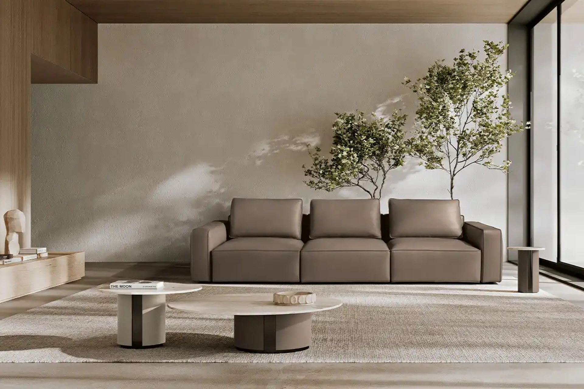 Con salotti e divani lineari di Max Divani come il modello Raja in pelle, potrai completare il tuo concept d'arredo.