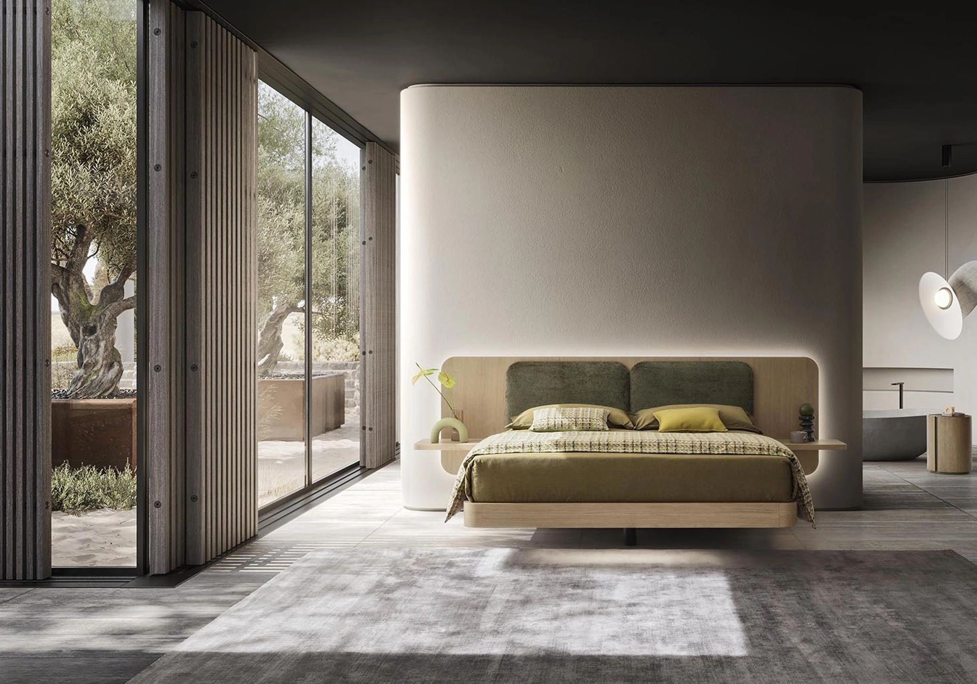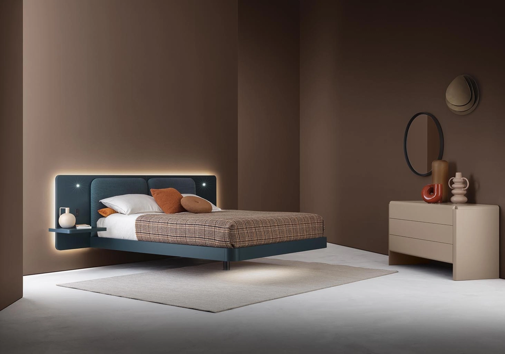 Se vuoi letti matrimoniali con testiera, eccoti il modello Grand Voile in laccato opaco per completare la camera da letto.