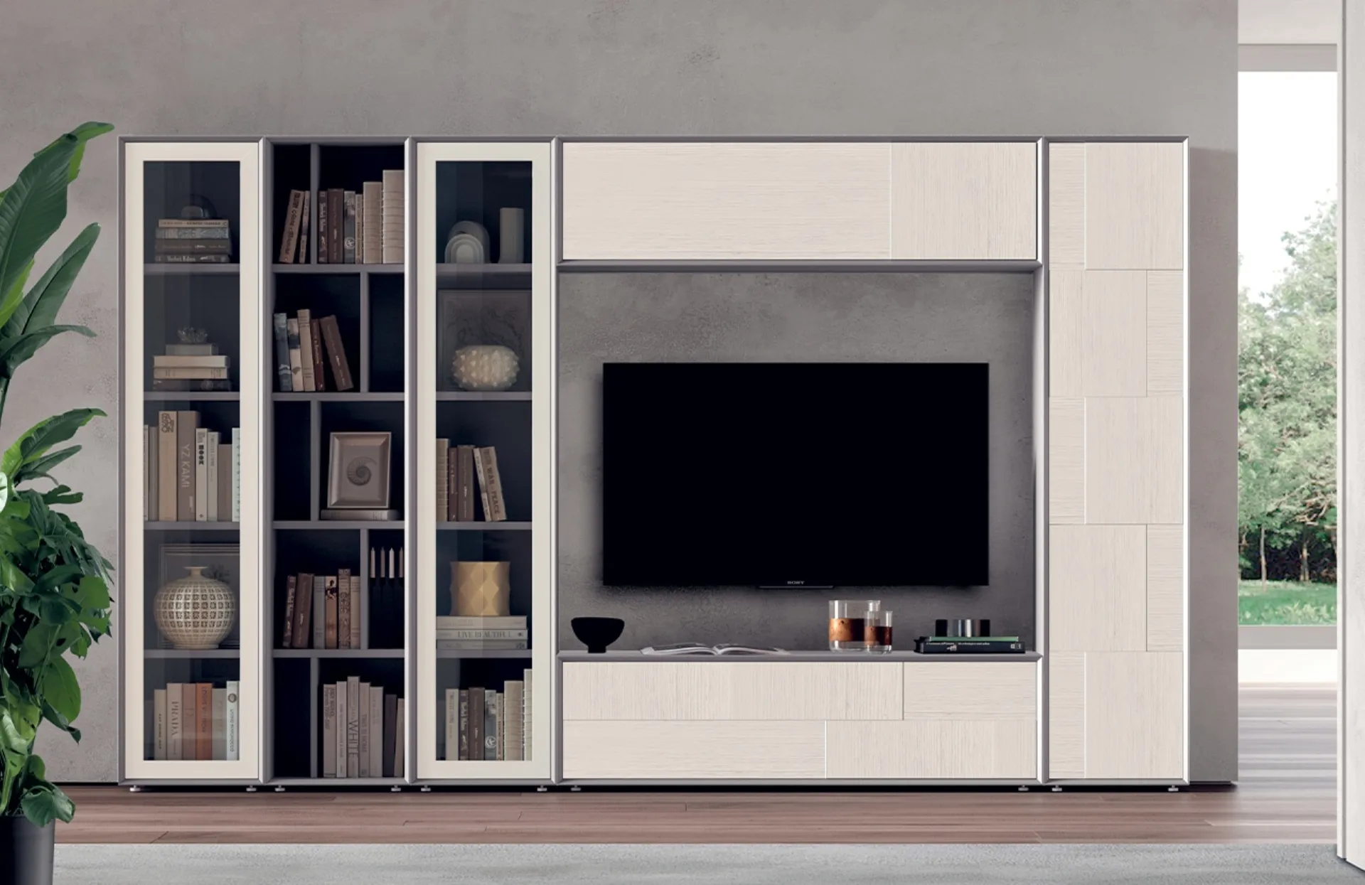Clicca e scopri di più sulla parete attrezzata Le Spezie composizione 23 del marchio Le Fablier: è la soluzione dalle linee moderne ideale per te.