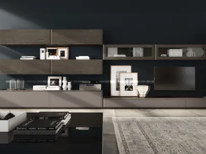 Se vuoi completare un soggiorno dinamico e operativo dalle linee moderne, ti presentiamo la parete attrezzata Melograno composizione 9 Le Fablier.