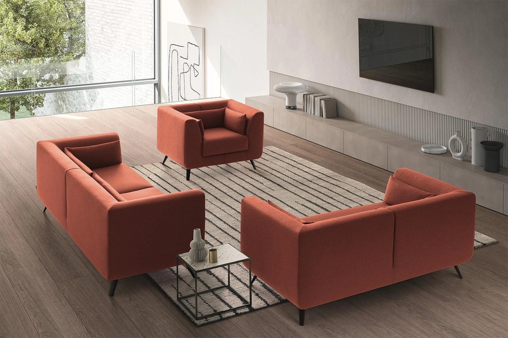 Se vuoi divani per salotti moderni, clicca e leggi di più sul modello Nemo in tessuto della marca Felis.