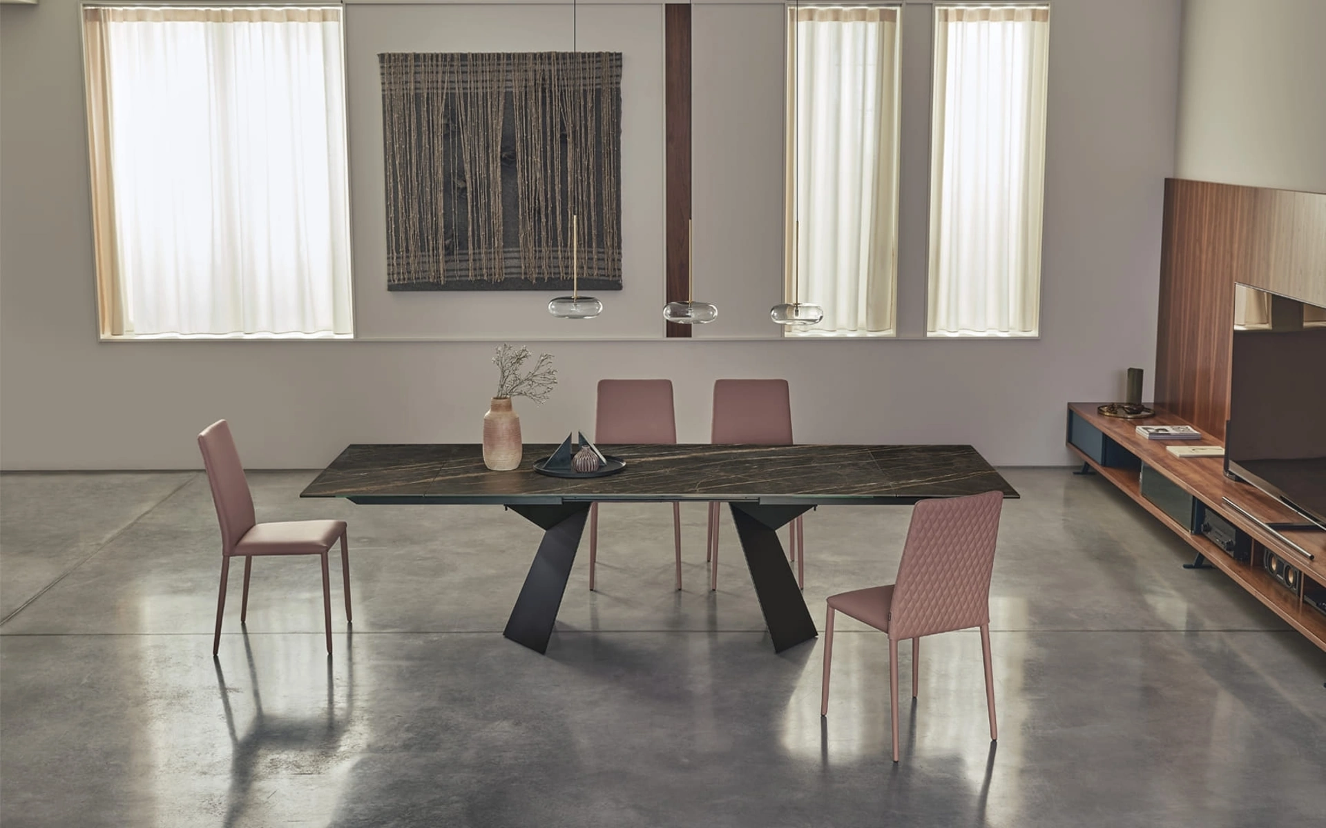 Se sei alla ricerca di tavoli moderni da pranzo, scopri i modelli allungabili di Bontempi: clicca e scopri il modello Fiandre Allungabile in gres.