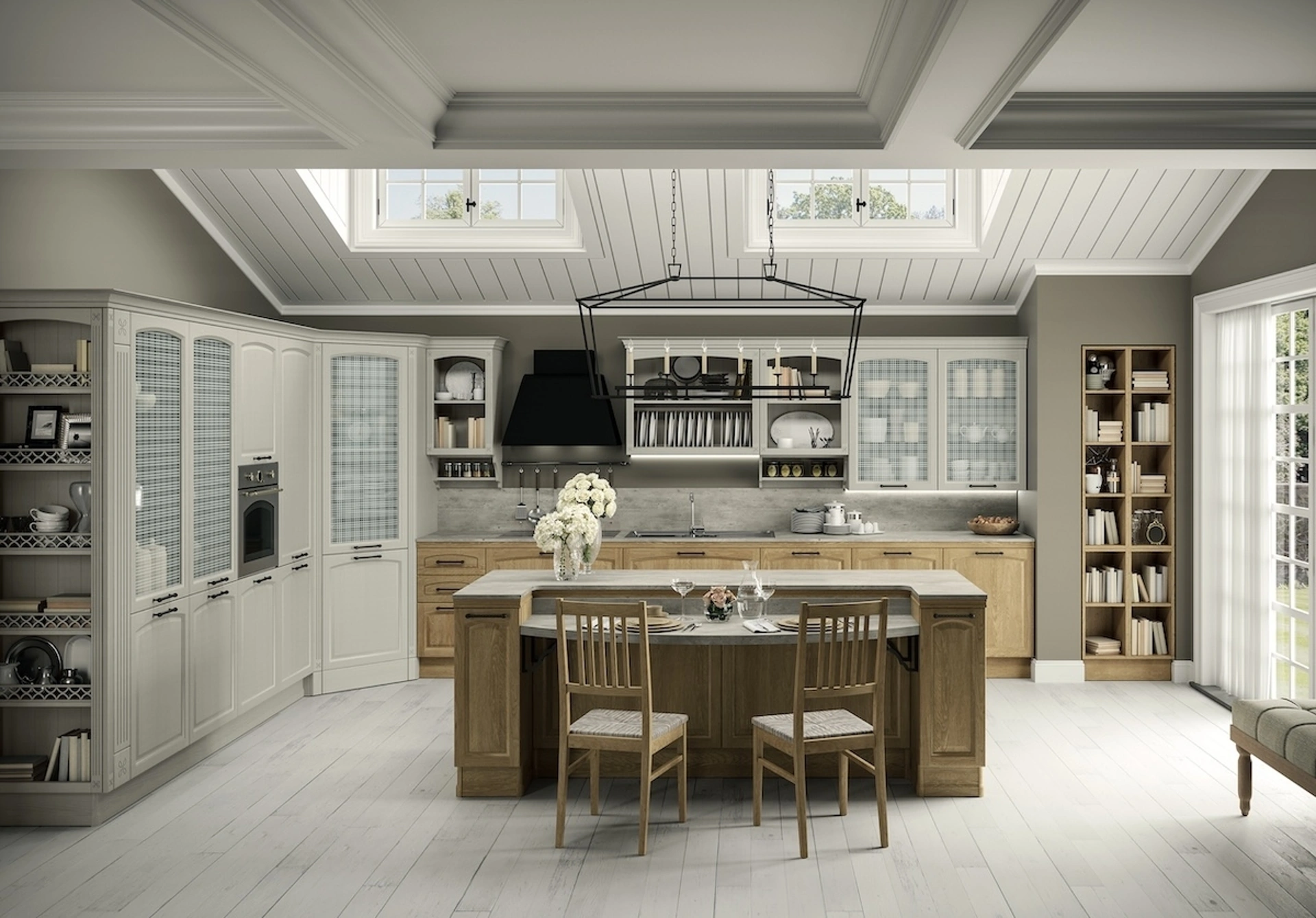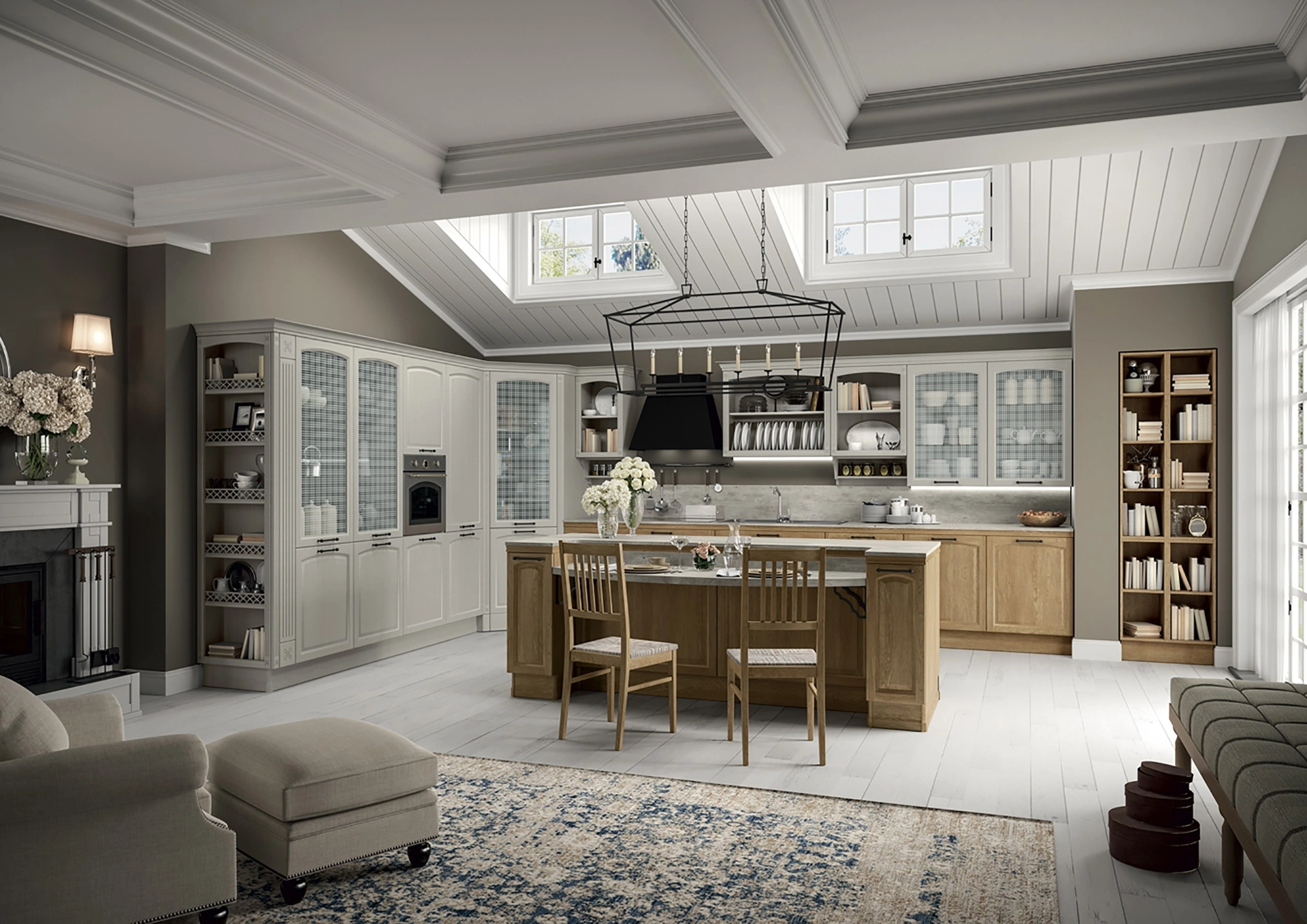 Vuoi ristrutturare la vecchia cucina? Clicca e scopri una ricca gamma di soluzioni classiche con isola: Gala Composizione 01 ti sta aspettando!